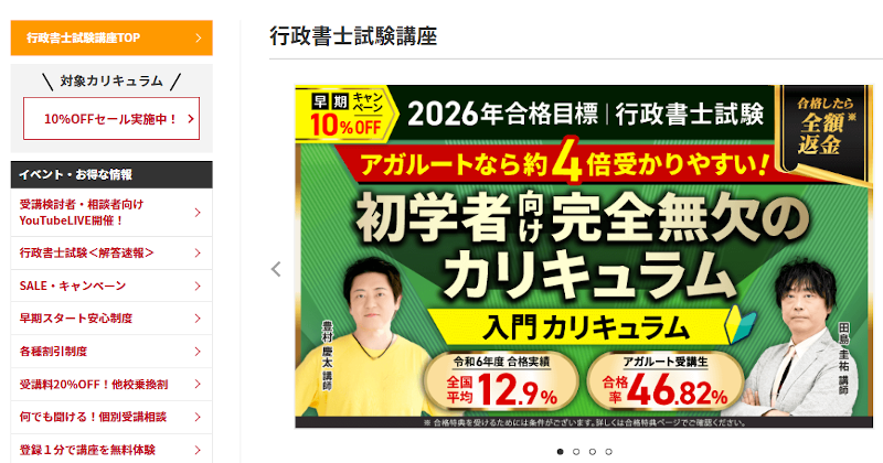 アガルートアカデミーには行政書士試験対策として有名な講師が在籍しています。